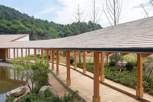 金屬復合瓦質地??柔軟的屬性可以做連續(xù)流動的曲面設計,展示木色金屬瓦建筑的案例,永遠是屋面設計師和屋面施工者一項極具挑戰(zhàn)的工作。國內的世界木材交易大...